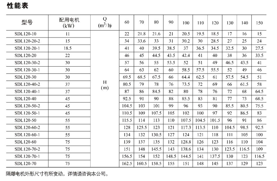 南元SDL120/SDLT120立式多級離心泵有不同的泵規格和不同級數,以滿足所需的流量和壓力。
